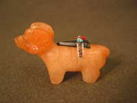 Handcarved ram fetish by Southwest Indian artist. Carved from Orange Alabaster stone and decorated with other small stones. Measures 2.25'' tall x 3.5'' wide x 1'' deep.